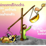 Él, levantando los ojos hacia sus discípulos, les dijo: «Dichosos los pobres, porque vuestro es el reino de Dios. Dichosos los que ahora tenéis hambre, porque quedaréis saciados. Dichosos los que ahora lloráis, porque reiréis. Dichosos vosotros, cuando os odien los hombres, y os excluyan, y os insulten, y proscriban vuestro nombre como infame, por causa del Hijo del hombre. Alegraos ese día y saltad de gozo, porque vuestra recompensa será grande en el cielo. Eso es lo que hacían vuestros padres con los profetas. Pero, ¡ay de vosotros, los ricos!, porque ya tenéis vuestro consuelo. ¡Ay de vosotros, los que ahora estáis saciados!, porque tendréis hambre. ¡Ay de los que ahora reís!, porque haréis duelo y lloraréis. ¡Ay si todo el mundo habla bien de vosotros! Eso es lo que hacían vuestros padres con los falsos profetas.»